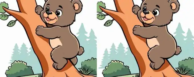 Tenta resolver um puzzle divertido, mas não fácil – tens de encontrar algumas diferenças entre d imagens, que mostram um urso engraçado numa árvore.