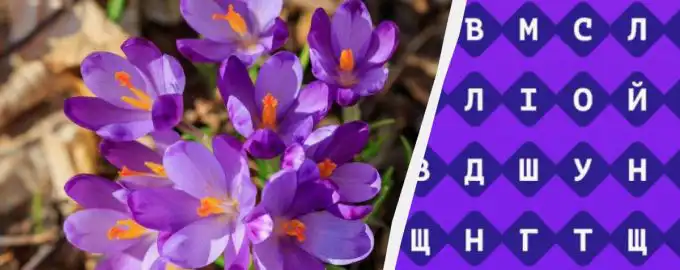 Teste a satenção numa nova tarefa da Moje. Tenta encontrar a palavra “crocus” entre muitas letras / Moje collage, Moje photo Os puzzles de