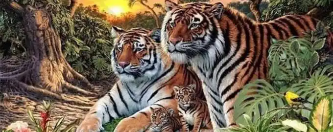 A imagem mostra uma bela cena de dois tigres adultos e as s crias na floresta. Ligação copiada Ilusão de ótica / Playbuzz Uma nova ilusão de ótica...