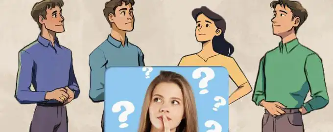 Olhe atentamente para a imagem e preste atenção aos pequenos pormenores. Identificar o marido da mulher de roupa amarela / colagem Moje, foto de depositphotos.