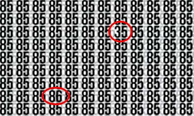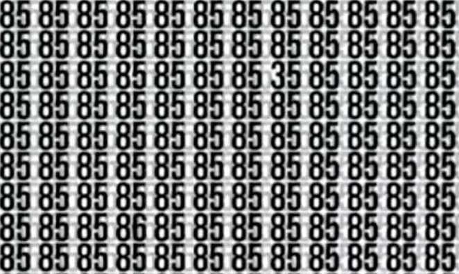 No enigma seguinte, é preciso encontrar dois números escondidos – 86 e 35 – entre um grande número de números 85, escreve jagranjosh. Não será fácil perceber onde estão escondidos os números que são diferentes de todos os outros.