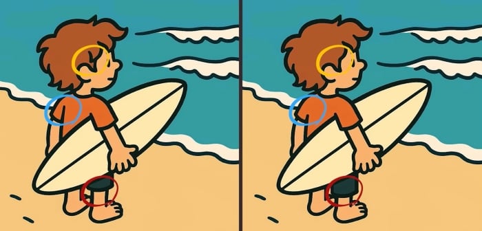 Pronto para aceitar o desafio? Observe com atenção as d imagens do surfista. À primeira vista, parecem exatamente igs, mas há três pequenas diferenças. Consegues identificá-las em apenas 43 segundos?