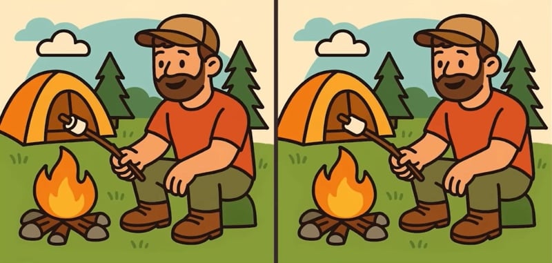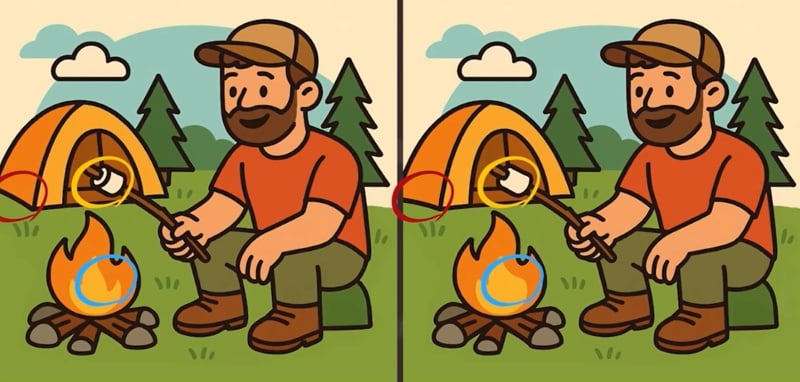 Desta vez, terá de olhar para as imagens de um homem a assar marshmallows junto à lareira. À primeira vista, parecem exatamente igs, mas o artista escondeu três pequenas diferenças. Só tens 51 segundos para as encontrar!