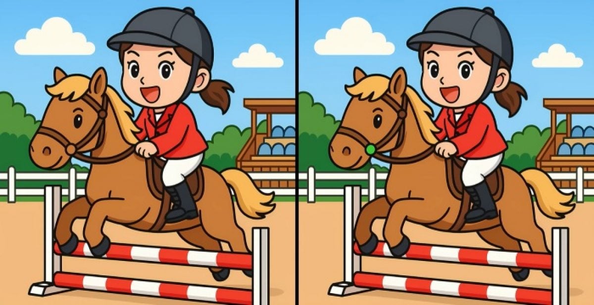 À tfrente estão d imagens de uma rapariga a montar um cavalo. À primeira vista, parecem exatamente igs, mas há três diferenças entre elas.