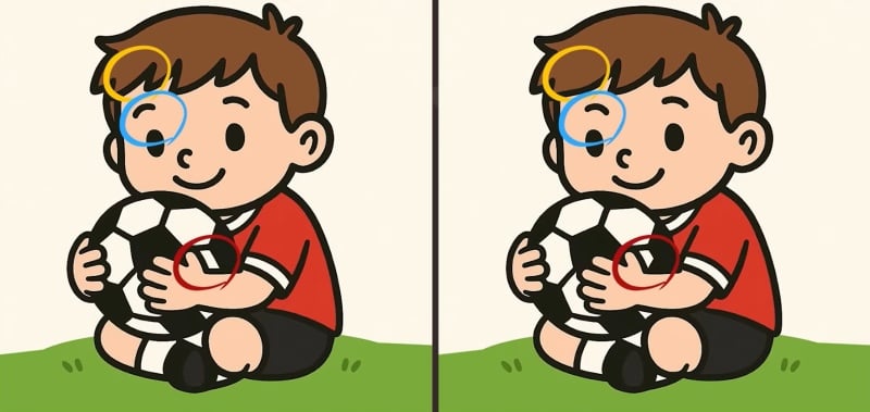 À tfrente estão d imagens com um rapaz e uma bola de futebol. Há três diferenças escondidas nelas, e a ttarefa é encontrá-las em apenas 49 segundos.