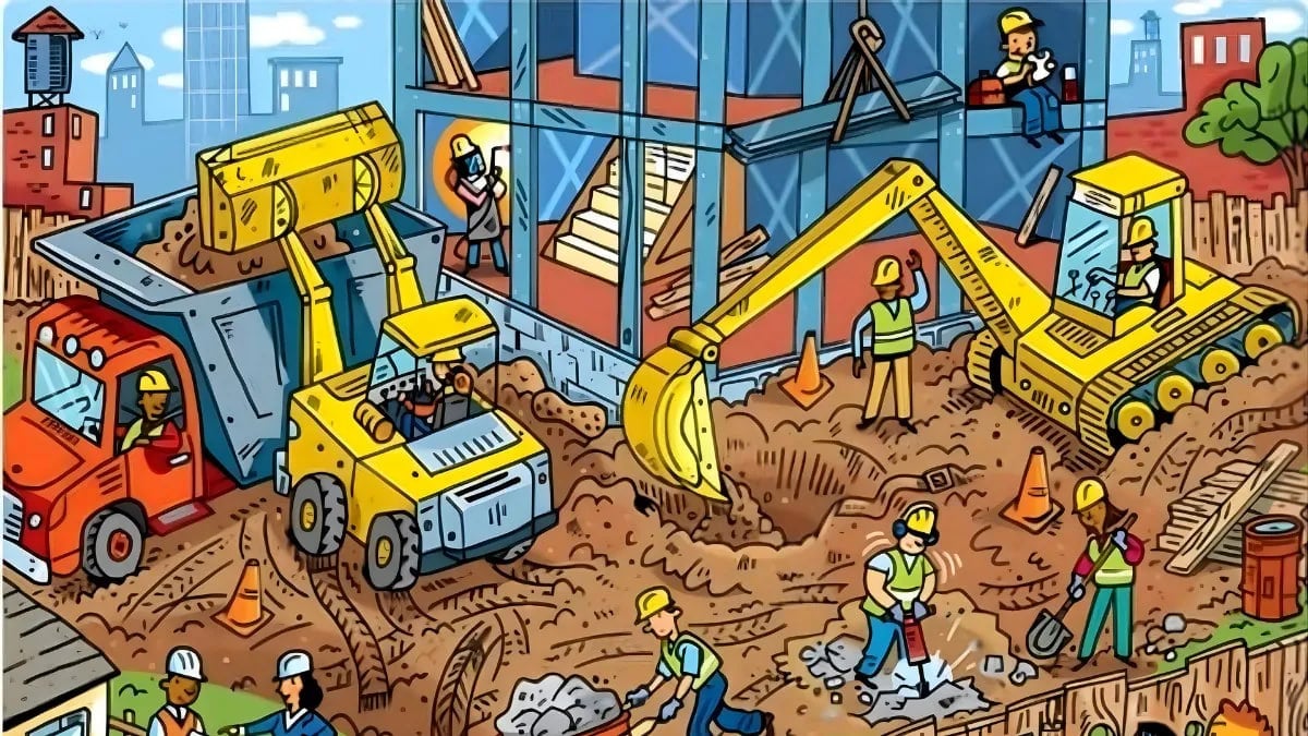 Neste jogo de puzzle, uma banana está escondida no meio de um estaleiro de construção.