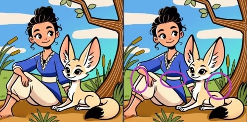 À tfrente estão d imagens de uma rapariga e uma raposa. À primeira vista, podem parecer exatamente igs, mas, na verdade, existem três pequenas diferenças entre elas.