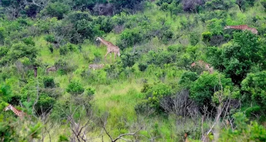 Vemos um grupo de animais a vaguear entre árvores e arbustos verdes. Há um certo número de girafas e zebras na imagem. Mas contar o número exato de animais não é uma tarefa fácil. Afinal, alguns animais são claramente visíveis, mas, ao mesmo tempo, alguns deles podem estar escondidos dos nossos olhos.