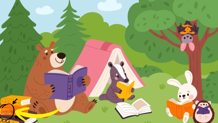 À primeira vista, tudo parece completamente normal. Vêem-se árvores, uma tenda acolhedora feita de um livro gigante e alguns animais engraçados. No entanto, há um estojo de lápis escondido algures na moldura, escreve Glavred.