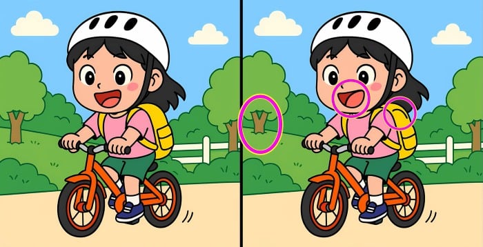 Pronto para se testar? Observe com atenção as imagens da rapariga na bicicleta. Há três diferenças entre elas, e a ttarefa é encontrá-las o mais rapidamente possível.