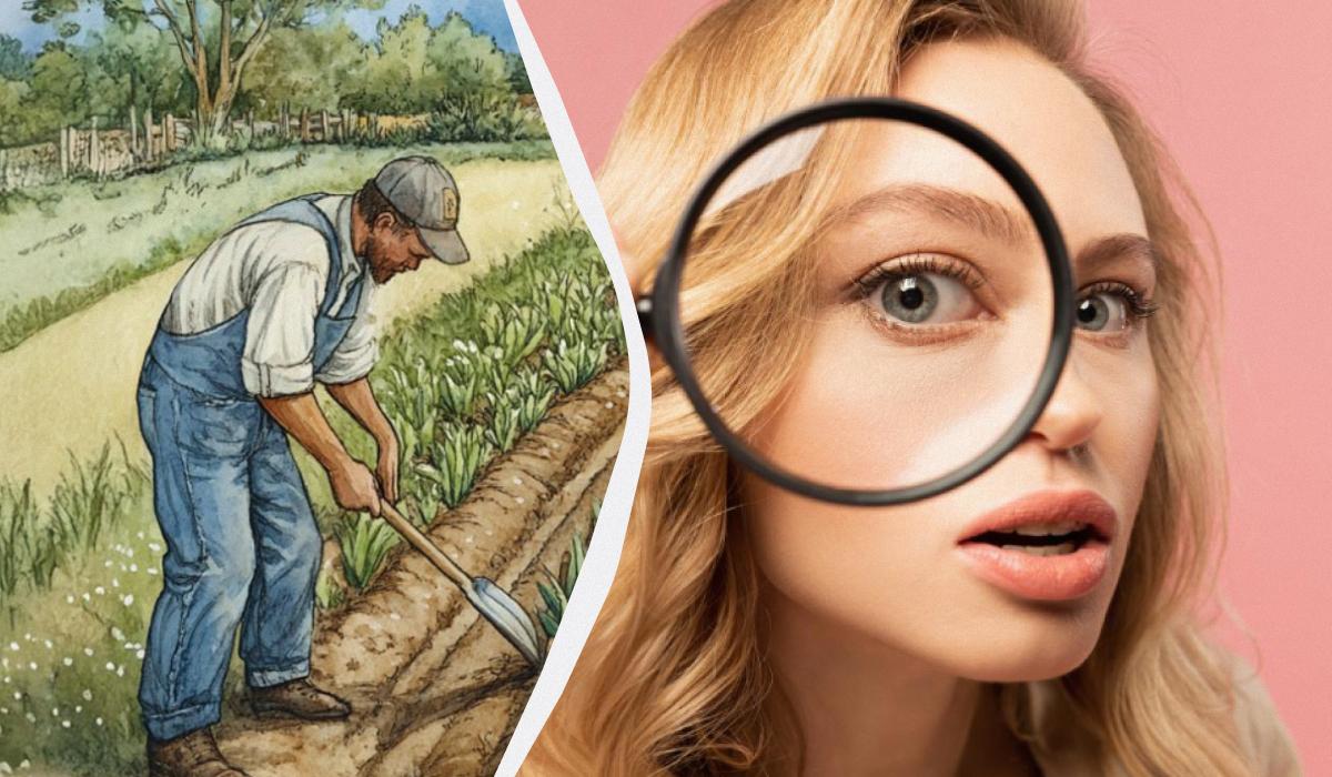 Vê imediatamente um campo perto de uma aldeia pitoresca e três homens a trabalhar ao ar livre. Tens de determinar o que está errado nesta imagem.