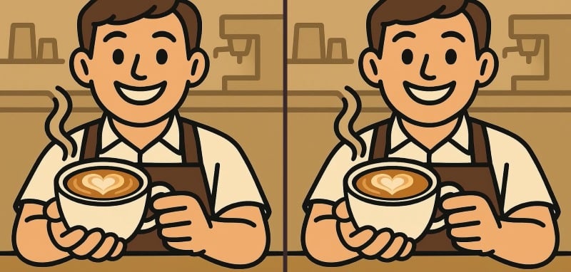 Pronto para testar os seus poderes de observação? Repara em d fotografias de um barista. À primeira vista, parecem idênticas, mas há três diferenças subtis entre elas. Consegues identificá-las em 45 segundos?