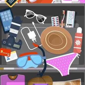 Nenhuma viagem passa sem fazer a mala. Na imagem abaixo, pode ver os pertences de uma pessoa que se preparou cuidadosamente para uma viagem.
