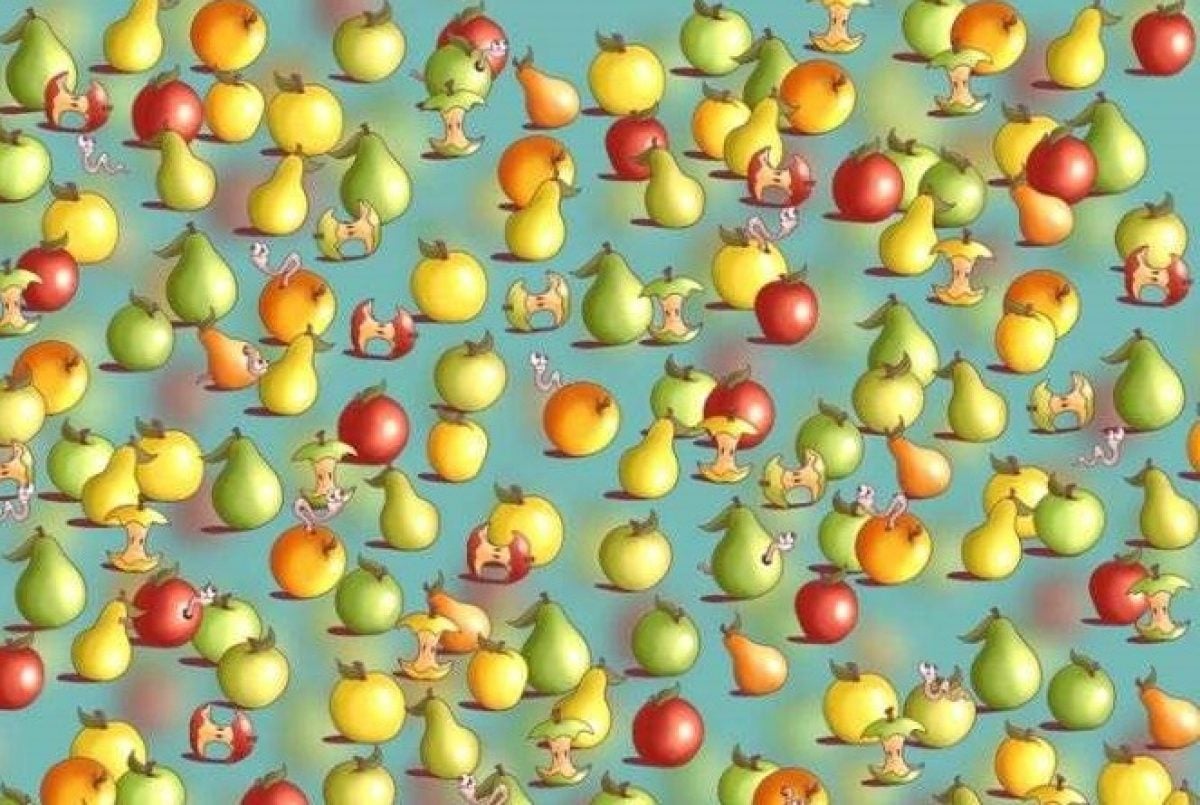 No próximo puzzle, é preciso encontrar um limão entre maçãs e pêras, escreve jagranjosh. Não será fácil perceber onde está escondido o citrino maroto.