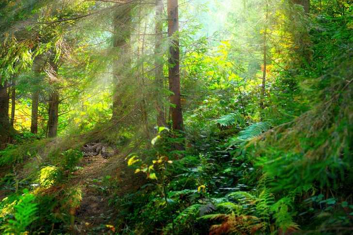 A imagem mostra uma floresta densa e verde. Algures, há uma cobra escondida, que temos de encontrar.