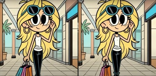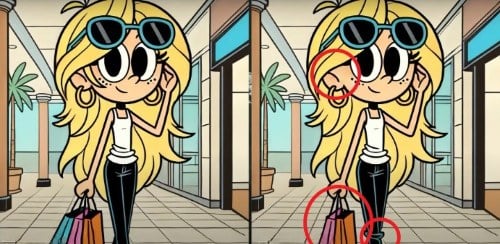 Pronto para te testares? À sfrente estão d fotografias de uma rapariga a segurar sacos. Parecem ser exatamente igs, mas isso é apenas uma ilusão – há três diferenças entre elas.