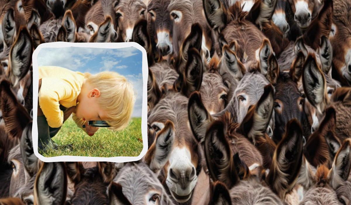 Hoje propomos-lhe que se ponha à prova, revelando-lhe o segredo da ilusão fotográfica com burros. Há um novilho escondido entre estes animais calmos, que será muito difícil de reconhecer, pois é muito parecido com eles.