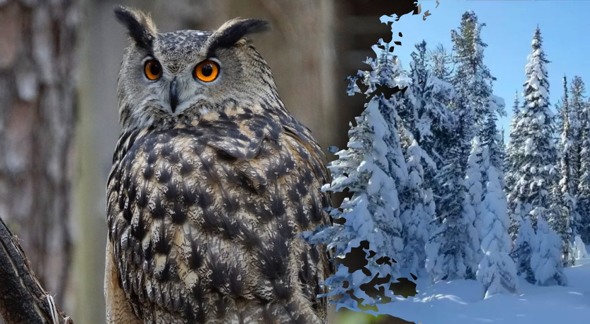 Precisas de encontrar uma coruja na floresta em 16 segundos / collage: Glavred, foto: fresherslive, unsplash.com