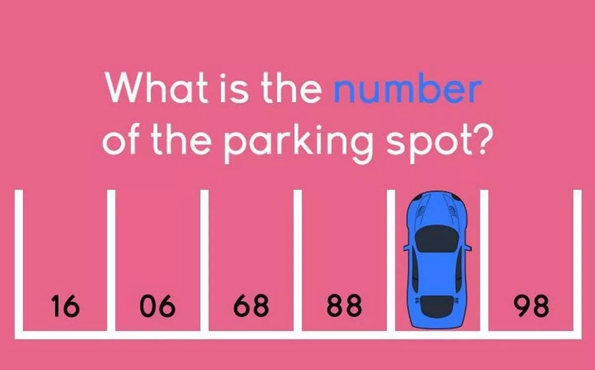Tudo o que tens de fazer é olhar para os números dos lugares de estacionamento e dizer q o número que está escondido debaixo do carro azul.