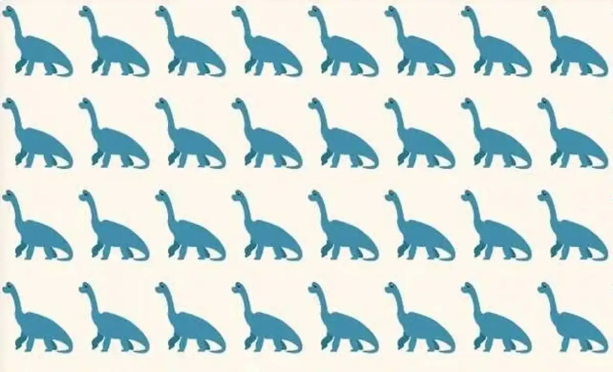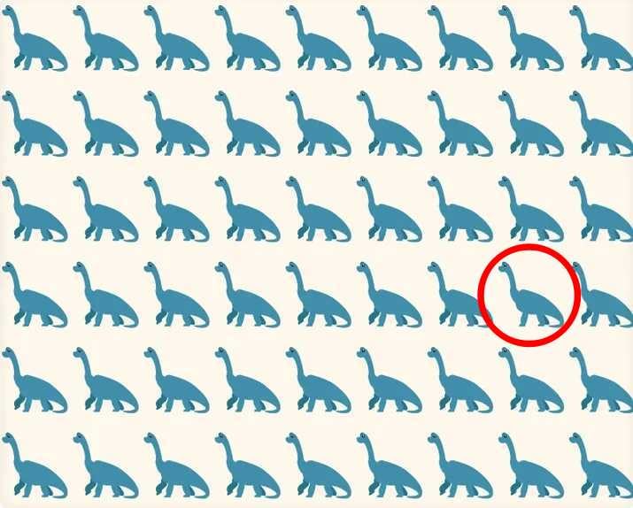 Apenas as pessoas com a visão mais apurada serão capazes de encontrar rapidamente o dinossauro, que difere de todos os outros por uma caraterística.